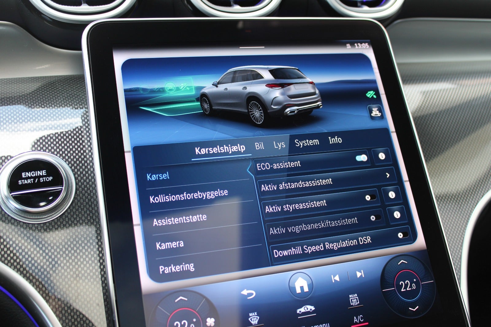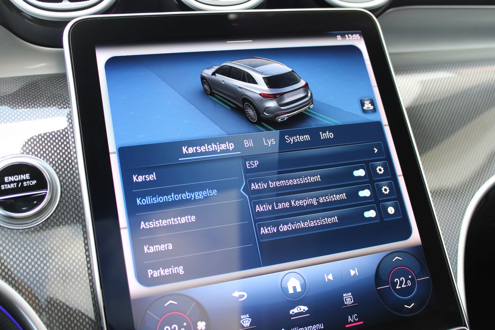 Blindvinkelsassistent, vognbaneassistent, elektrisk kabinevarmer (parkeringsvarmer), selenitgrå metallak, sort loftshimmel, ambientebelysning premium, mørktonede ruder i bag, fjernlysassistent, skiltegenkendelse, bakkamera, DAB-radio, digitalt cockpit, aktiv parkeringsassistent, projektionsfunktioner over forlygter, PRE-SAFE impuls side, 2 zone klima, Dynamic Select, strækningsbaseret hastighedstilpasning, læder sportsrat m. multifunktion, lyspakke, parkeringspakke high, spejlpakke, tyverisikringspakke plus, vinterpakke, sædevarme, kabinelyspakke, tagræling, automatisk hastighedsregulering, el-klapbare sidespejle, 9-trins aut.gear, smartphone integrationspakke, MB Connect, memory pakke, aut. nedbl. bakspejl, regnsensor, el-justerbar lændestøtte, nødopkaldssystem, musikstreaming via bluetooth, kørecomputer, bagagerumsdækken, splitbagsæde, kurvelys, LED-baglygter, LED-kørelys, fjernb. centrallås, udv. temp. måler, 4x el-ruder, elektrisk parkeringsbremse, håndfrit til mobil, parkeringssensor for og bag, isofix, automatisk lys,